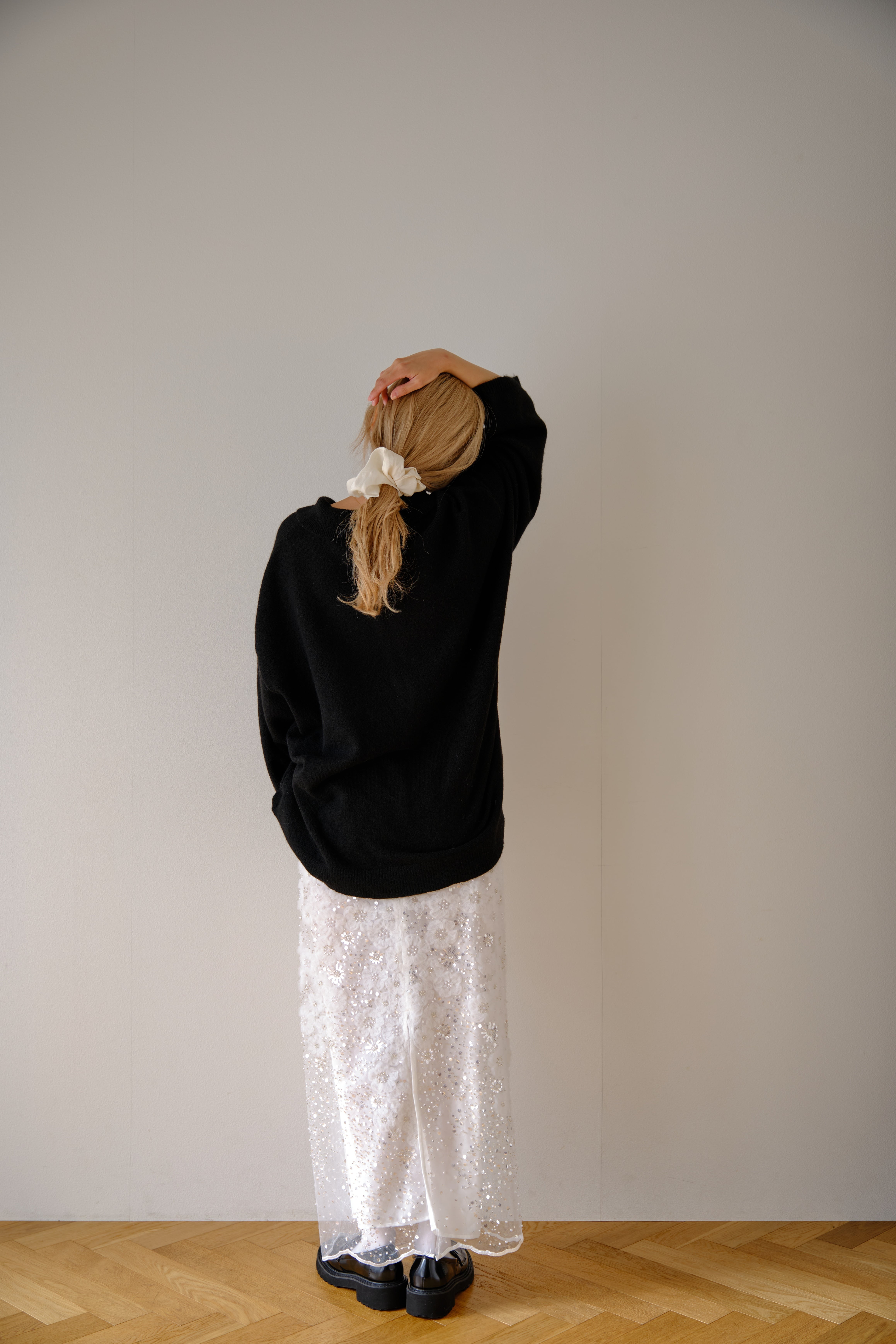 やわらかな風合いのニット素材を使用し、リラックス感のあるシルエットながら、だらしなく見えないバランスに仕上げました。