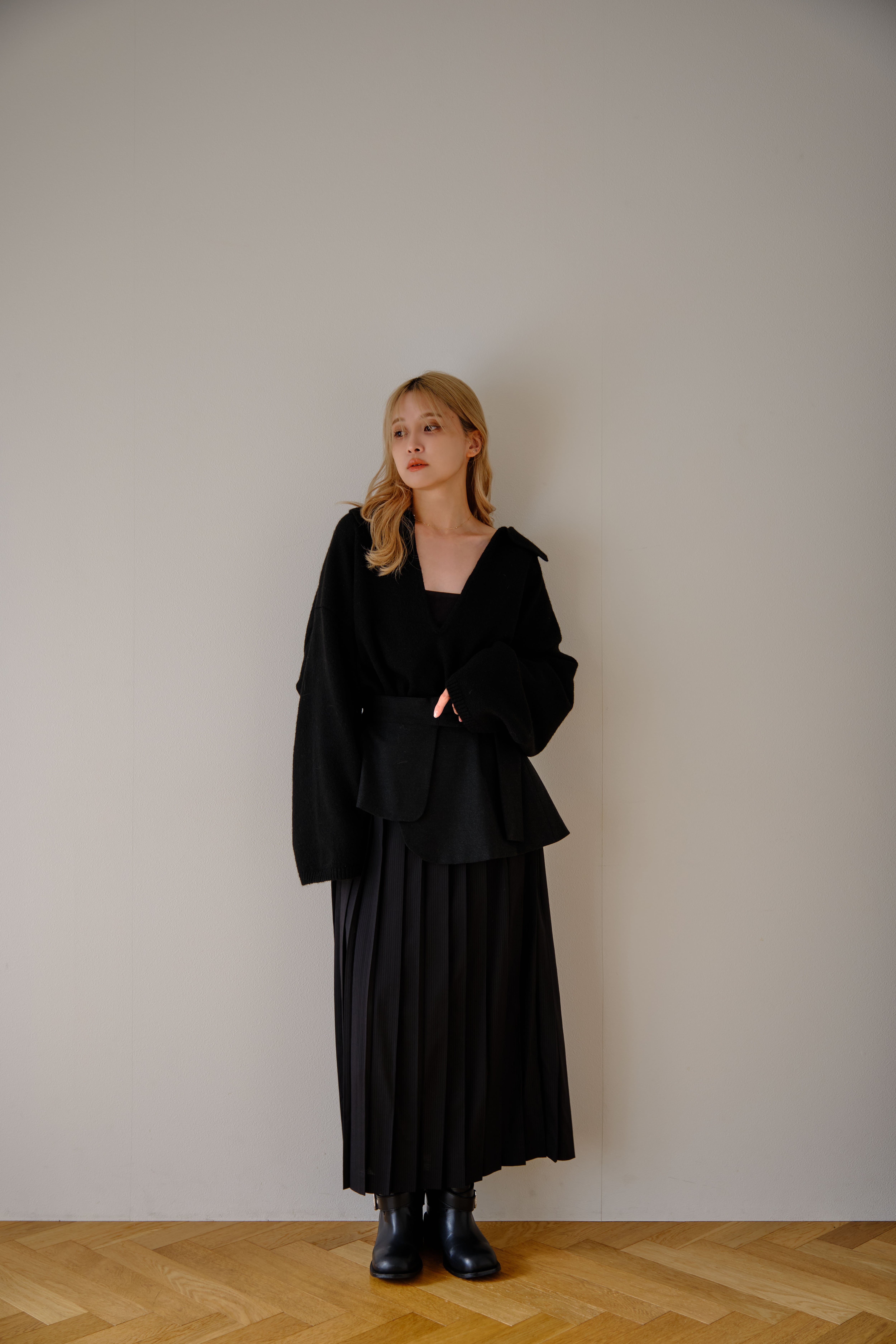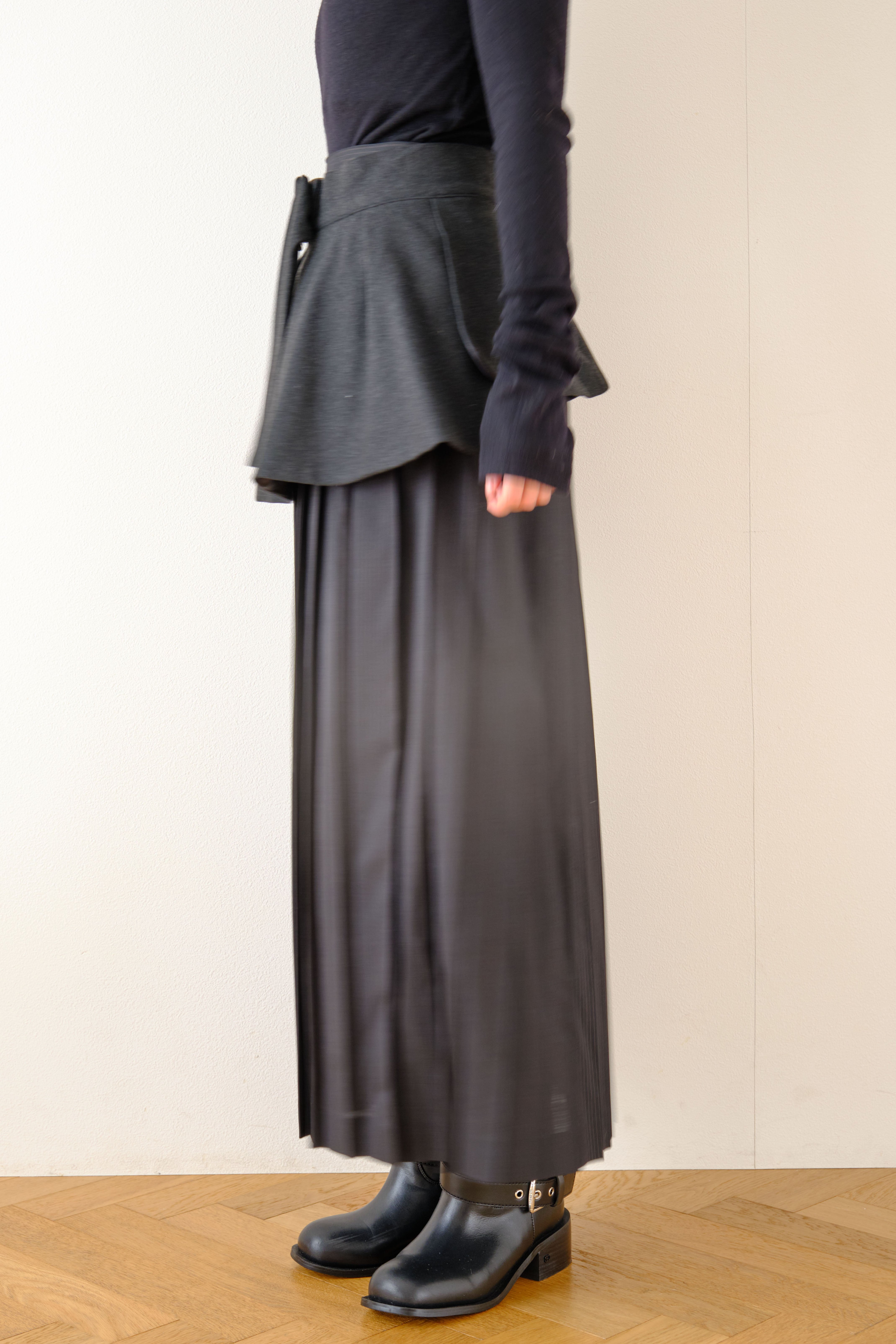 オーバースカートは取り外しが可能な仕様になっており、セットでの着用はもちろん、プリーツスカート単体でも楽しめる2WAYデザイン。
