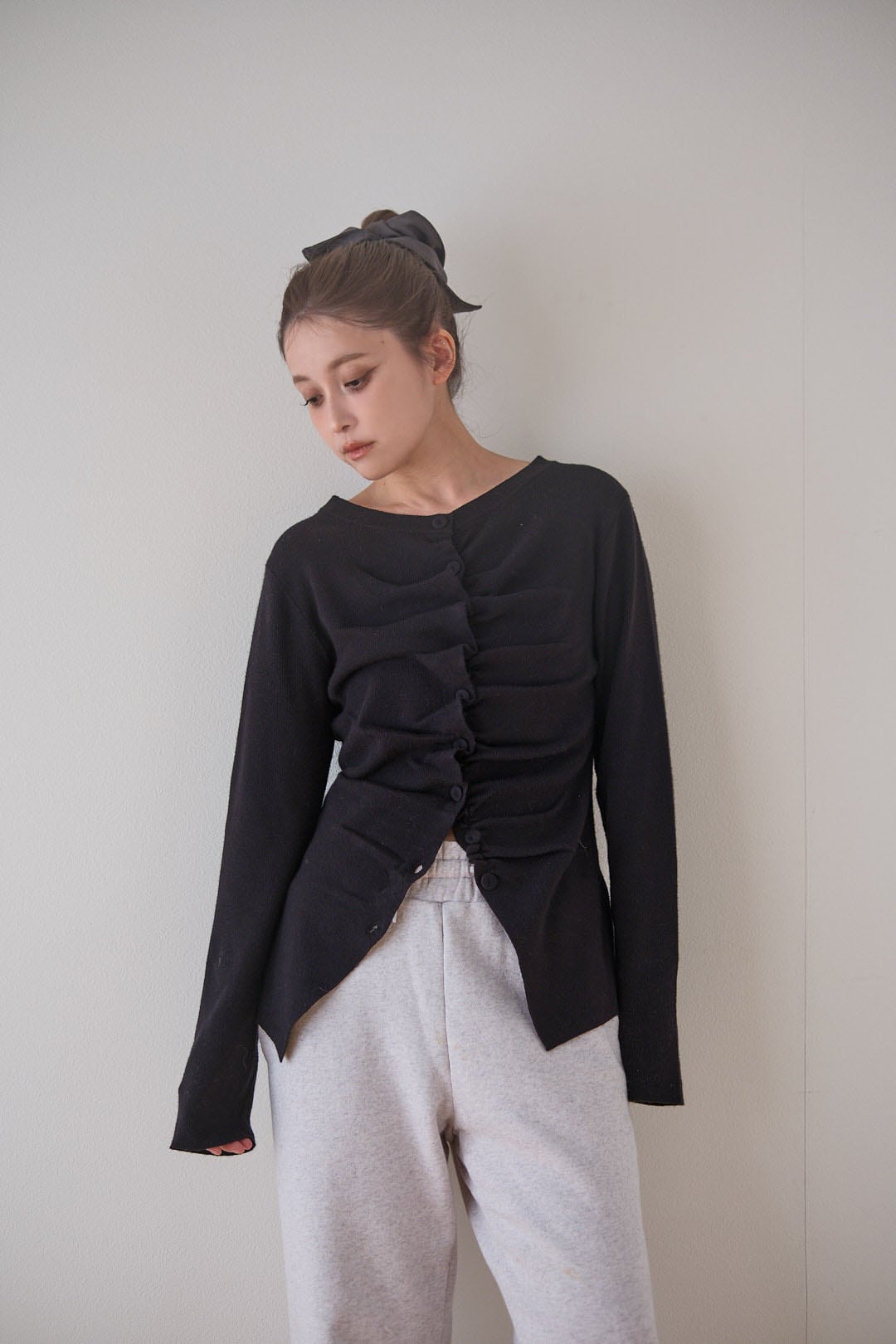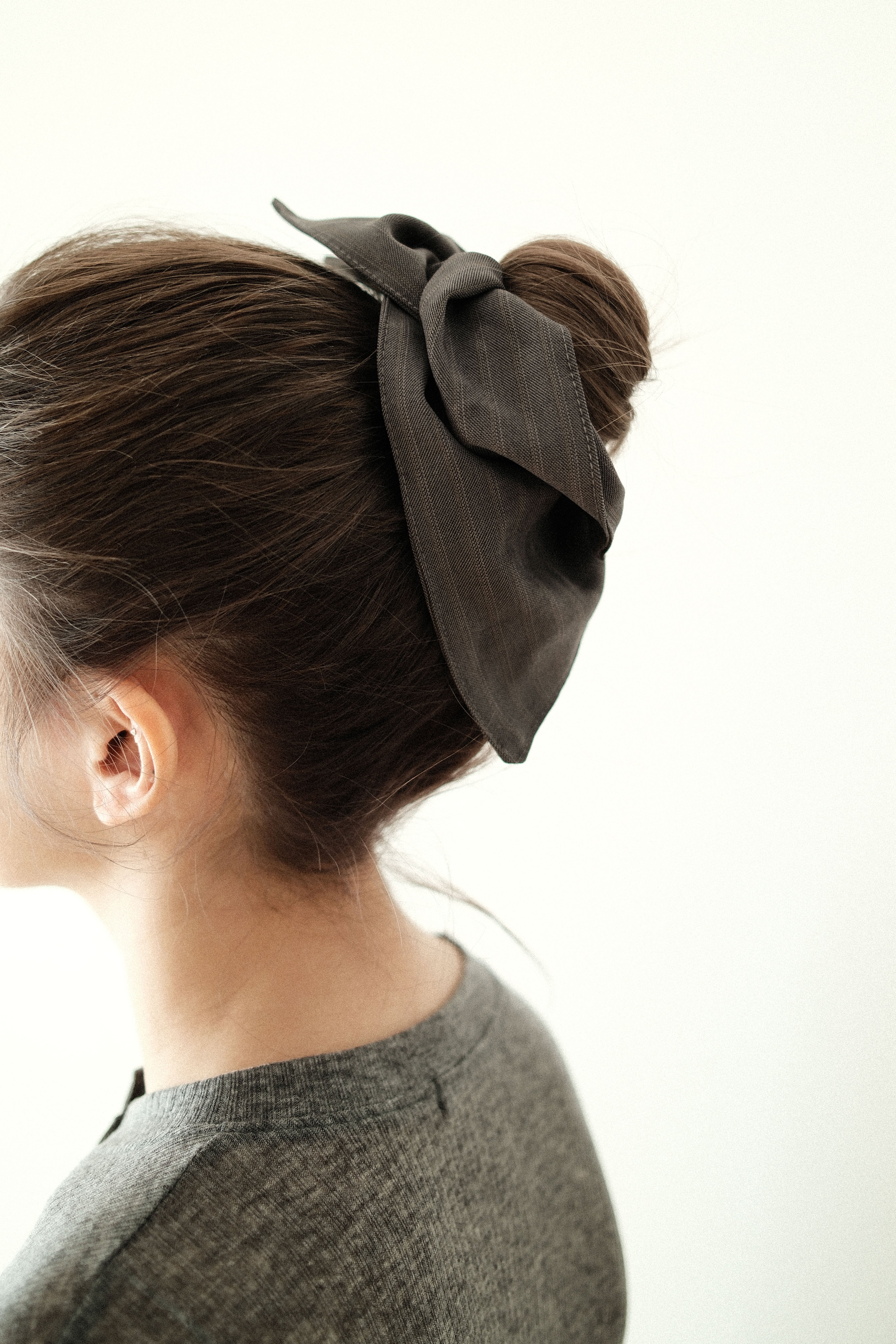 結ぶだけでさりげなくニュアンスが生まれ、いつものまとめ髪を少しだけ洗練された印象に仕上げてくれます。