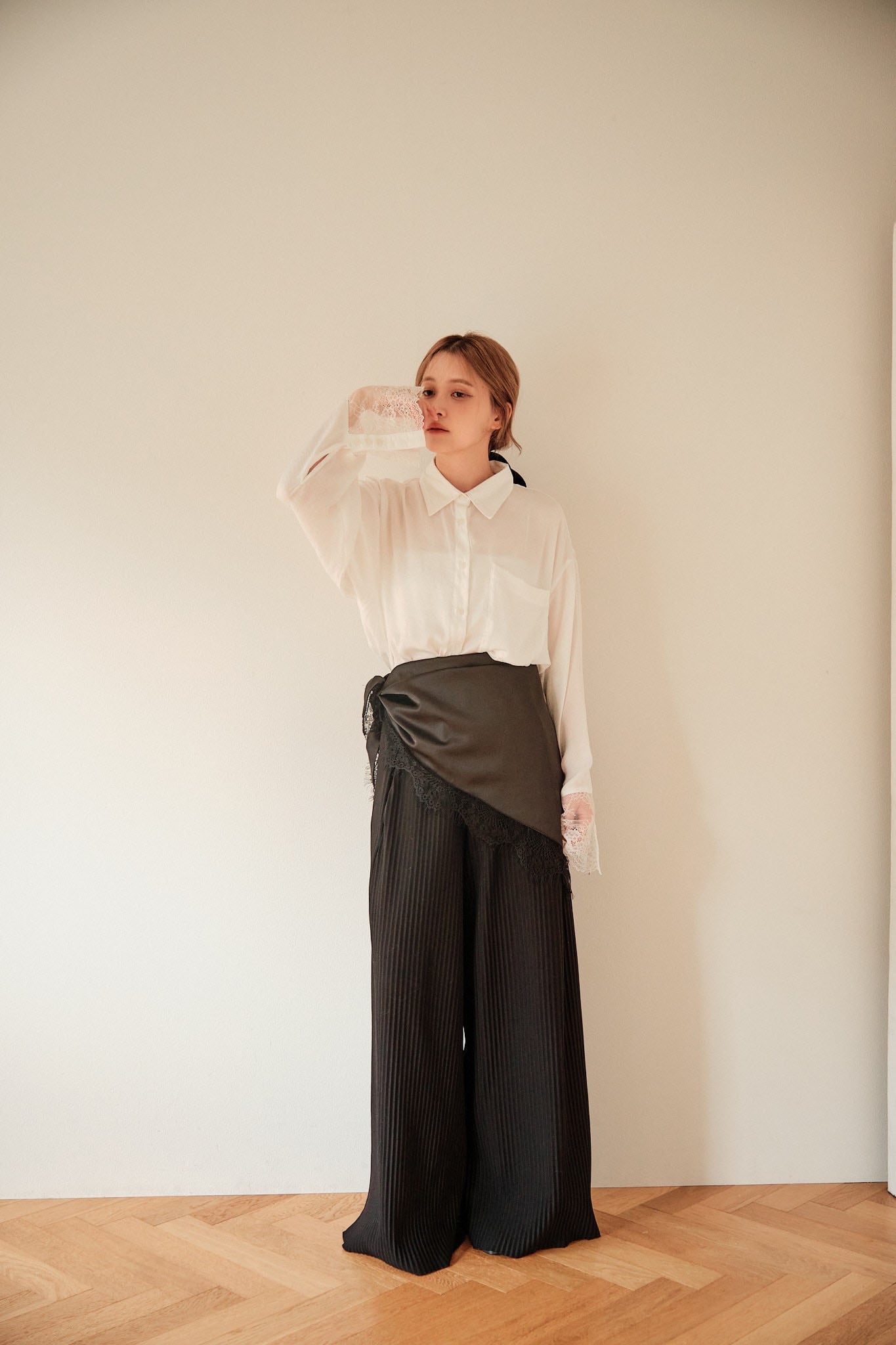 シンプルなスタイリングに重ねるだけで、少しだけ空気が変わる。