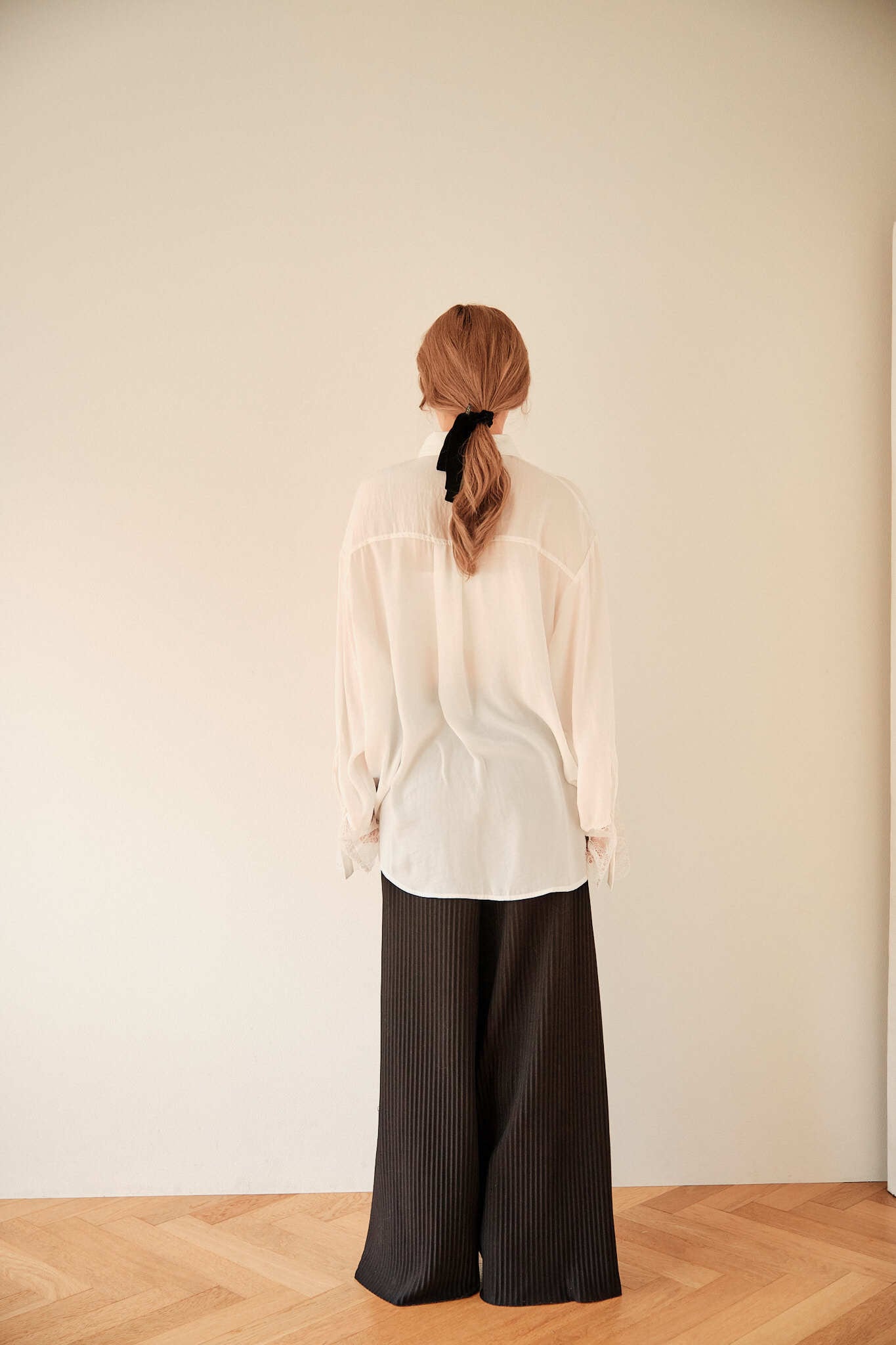 軽く透けるシフォンと、袖口のレース。